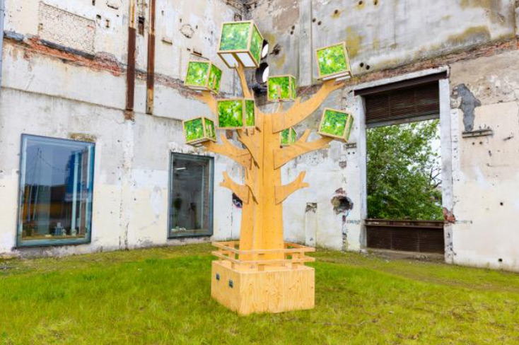 Op het evenementenplein en bij de BiedtPlek staan installaties van Vixen. De kubusboom staat symbool voor meer groen op het oude industrieterrein. De van hergebruikte materialen gemaakte dronken lantaarn-bank zorg voor onverwachte ontmoetingen doordat de installatie rondom een zitbank is.